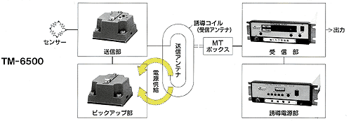 | テレメ-タ-は回転中の現象(トルク・応力・温度)を非接触で電波を仲介してテレメ-タ-リング計測をします。回転体にセンサ-(ストレ-ンゲ-ジ・測温抵抗体)と一緒に小型で回転遠心力に強いテレメ-タ-の送信器を取りつけ回転体と一緒に回転しながら現象信号を周波数変調した電波にのせて発信し,受信部で再生された現象信号を表示及び出力します. |