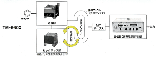 | テレメ-タ-は回転中の現象(トルク・応力・温度)を非接触で電波を仲介してテレメ-タ-リング計測をします。回転体にセンサ-(ストレ-ンゲ-ジ・測温抵抗体)と一緒に小型で回転遠心力に強いテレメ-タ-の送信器を取りつけ回転体と一緒に回転しながら現象信号を周波数変調した電波にのせて発信し,受信部で再生された現象信号を表示及び出力します. |